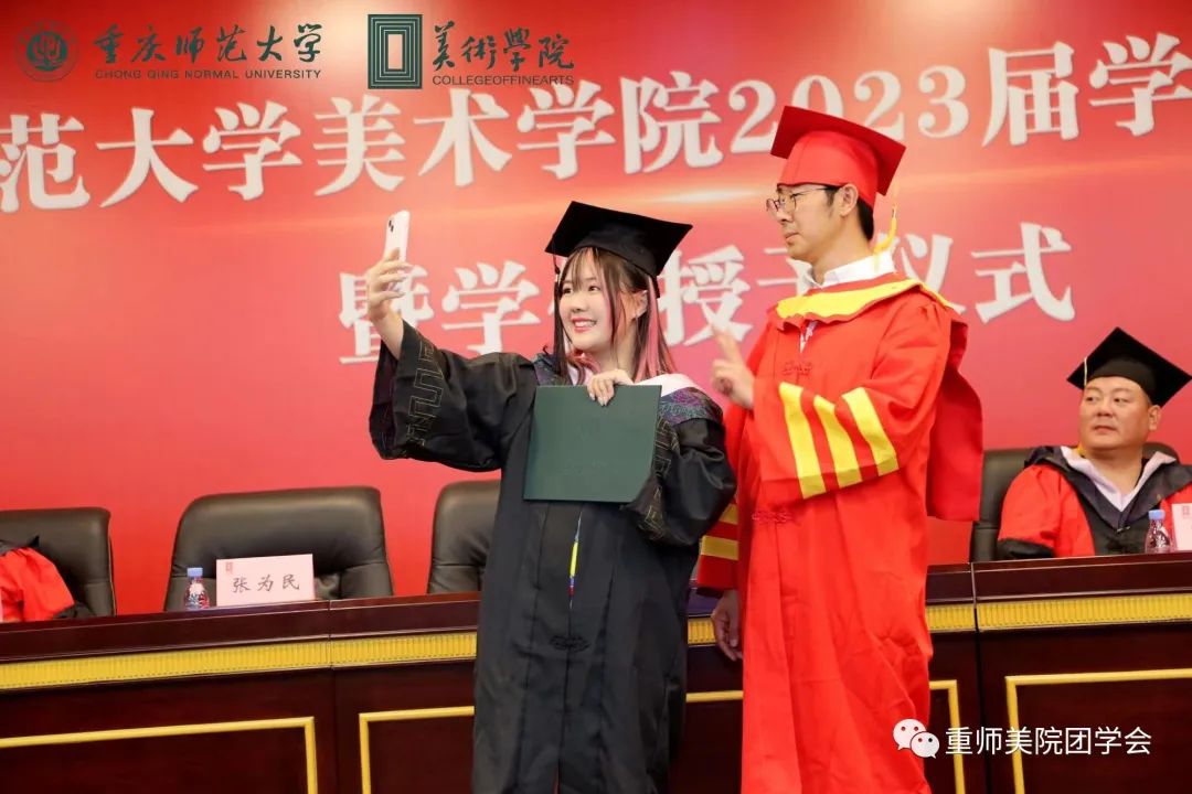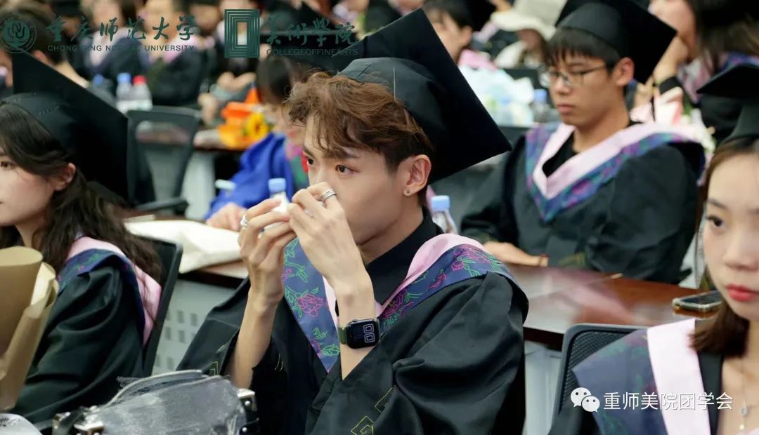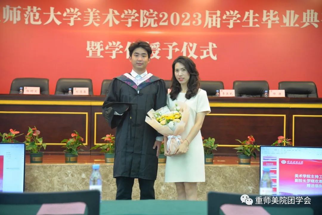 杨凯亿同学说到“时间之河川流不息,每一代青年都有自己的际遇和机缘”感慨着来自五湖四海的莘莘学子与重师相知相遇。师恩难忘,感恩老师们带领大家发现美、创造美、享受美,希望同学们在探索“人文、学术、创意、阳光、美丽”院训中接续奋斗,追求卓越。