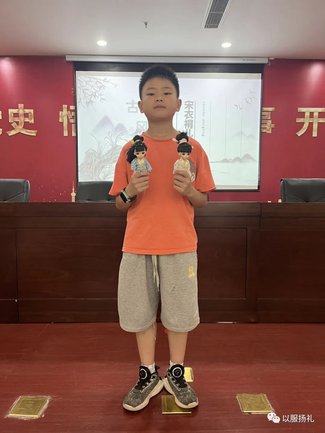 激发孩子们的学习兴趣是上好一堂美术课的前提,团队在课程设计中力求创新课程导入环节。在每次课程的具体实施过程中,以服扬礼团队准备了丰富的图文信息教学资料,创设课堂活动情景,尤其是通过相关名人故事的视频展示,带领小朋友了解中国历史名人的奇闻轶事,让小朋友从有趣的历史故事中初步感知他们所处时代的重要服装文化,也深刻体会这些历史名人的的优秀精神品质,为孩子们进一步深入学习中国传统服饰文化知识的奠定基础。