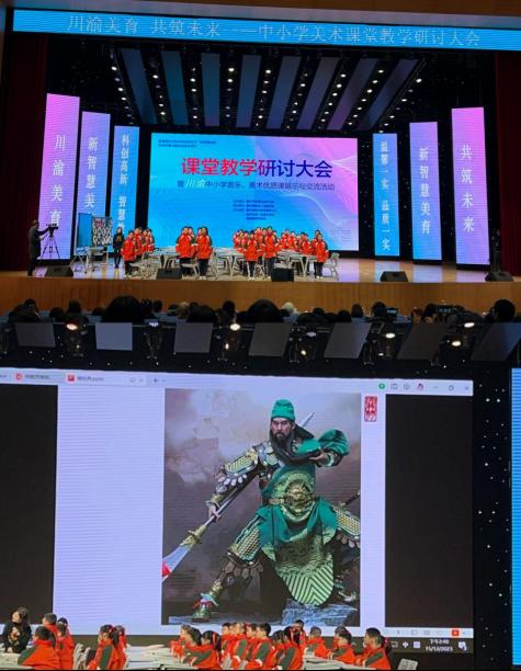 在新课程改革背景下,川渝两地教师积极学习新课标理念,转变教育观念。会议前半场,两地教师为我们带来了精彩的五堂优质美术课。《文明之光——汝窑青瓷》为我们讲述了面如玉、青如天的汝窑之美,让我们感悟到了中国瓷器的世界力量;《润泽天府——探秘石犀》则为我们带来了神秘的石犀文化,告诉了我们知从所来、方明所得;《石话石说》给我们揭秘了赏石的具体方法,分享了在赏石中需要注重把握科学之美与文化意蕴之美;《桥见匠心》一课的时代跨越让人叹为观止,漫步千里江山,创心中之桥;《读经典绘名著——三国武将关羽》一课中用综合材料创作出形神兼备的忠义英雄。教师们以核心素养为导向,立足美术学科本位,运用多学科知识进行学科融合。在课堂展示环节,教师们的讲课娓娓动听,学生们的互动妙趣横生,使观众身临其境,课堂氛围扣人心弦。