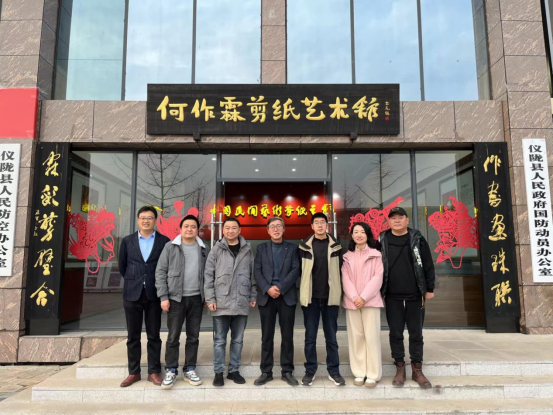 与仪陇剪纸传承人何小锵(左三,剪纸艺术大师何作霖之子)合影