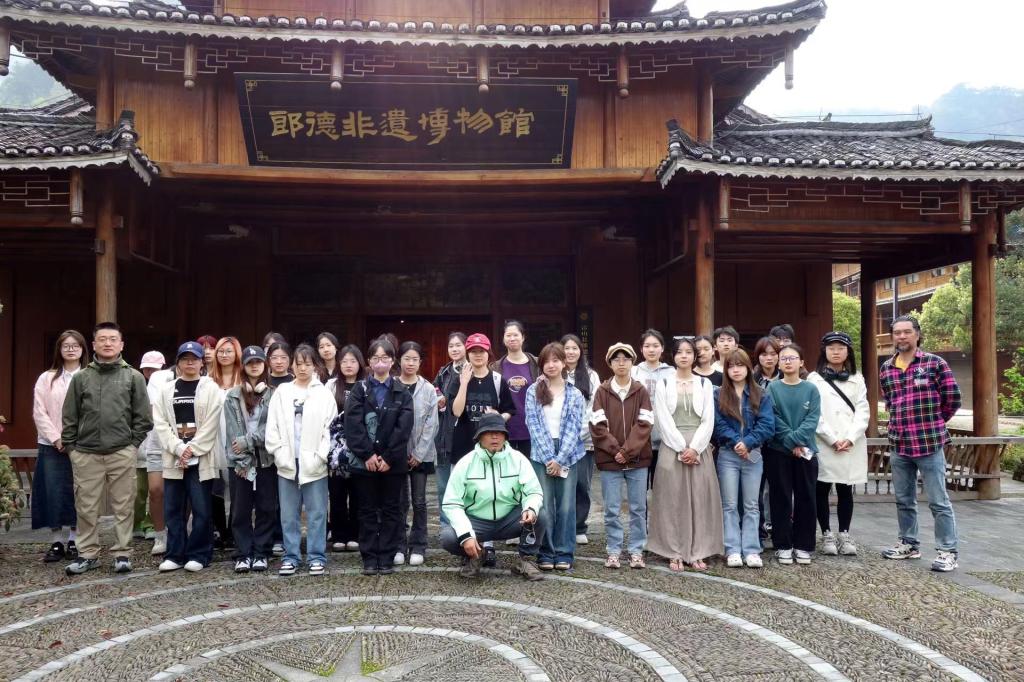 本次课程分别在朗德上寨、朗德下寨、南花寨、千户苗寨等地进行现场写生和考察。学生们在凯里苗寨感受了苗家的刺绣、音乐、舞蹈、建筑等非遗文化,在朗德非遗博物馆和西江博物馆了解和学习了苗族的民族文化历史和风土习俗等。师生们拿起画笔,描绘了当地的自然景观和人文景观,也切身体会到了教学相长的获得感。