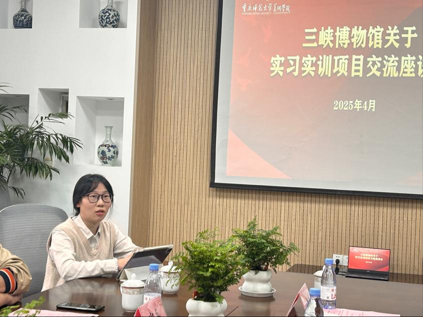 2025年4月24日下午,重庆中国三峡博物馆与美术学院在学院艺术吧召开实习实践基地建设研讨会,双方围绕校馆企合作、人才培养、文创开发及美育教育等议题展开深入交流。美术学院党委书记刘清泉、院长罗晓欢、副院长石永婷,三峡博物馆党委委员、文创与合作部主任池林、重庆文博展览有限公司执行董事长郭永、重庆中国三峡博物馆文创与合作部刘念,美术学院视觉传达设计专业系主任任思晓、余岚副教授、骨干教师刘倩及实习生代表出席会议,共谋产教融合新路径。