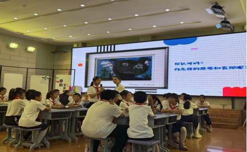 开馆仪式结束后,嘉宾们在工作人员的引导下,有序移步至金石礼堂,共同观摩由石坝街小学美术教师张也悦精心准备的展示课《巨匠童心—毕加索》。课堂上,张也悦老师以生动活泼的语言,丰富的多媒体素材,从毕加索的生平故事切入,巧妙串联起立体主义绘画风格的演变历程。通过展示毕加索不同时期的经典画作,引导学生观察画面的色彩碰撞、线条解构与几何重组,鼓励学生突破传统绘画思维,尝试用拼贴、变形等创新技法进行创作。
