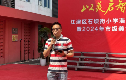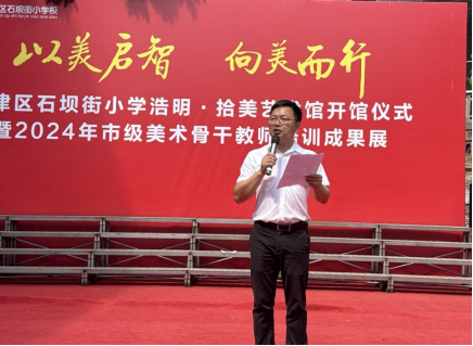 上午10时10分,开馆仪式正式启动。首先由江津区石坝街小学校党委书记、校长杨南波致辞。杨书记在讲话中表达了对到场嘉宾的热烈欢迎,并回顾了艺术馆从筹备到落成的历程。浩明·拾美艺术馆的建成,不仅是校园文化建设的里程碑,更为师生提供了零距离接触艺术、感受艺术魅力的实践平台,将有力推动学校美育生态的完善与发展。
