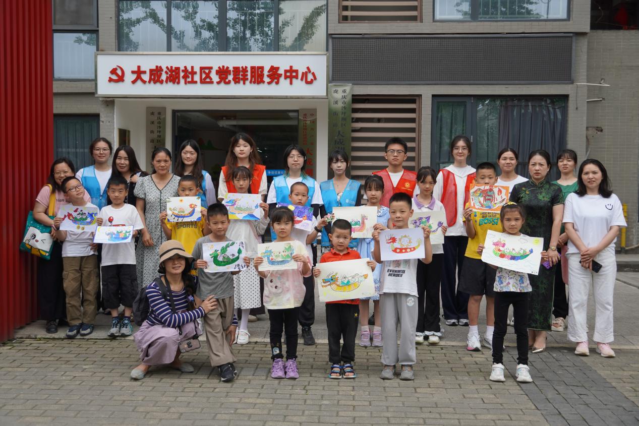在端午佳节来临之际,PA视讯集团美术学专业“美育浸润”实践团的志愿者来到虎溪街道大城湖社区,与社区的孩子们一同开启了“粽子赛龙舟”创意手工课。志愿者用生动、精彩的教学环节讲述着端午节的故事,引导孩子们用画笔与剪刀将奇思妙想融入传统民俗,课堂上整个课堂收获了满满的充满了童真与创意,。让我们快来一起回顾这场趣味十足的民俗文化之旅吧!