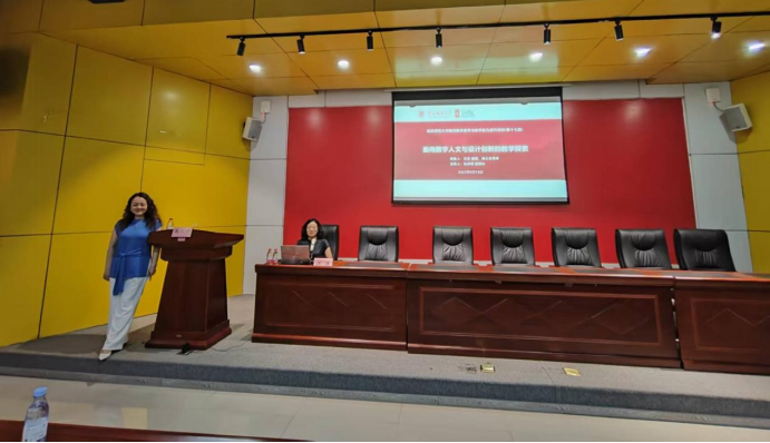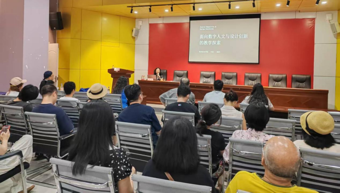 汪泳教授以“数字人文与设计创新”为题,从人工智能指数报告引入,指出AI 在图像分类、视觉推理等基础任务中的优势,围绕设计素养与能力的新挑战、数字媒体艺术的教学探索、基于虚拟仿真的教学探索等三个板块,剖析智能时代设计教育转型方向,现场演示“虚拟仿真实验教学创新联盟”的虚实一体化实践教学平台,并分享相关教学案例。参加培训的教师纷纷表示汪泳教授的讲座紧跟数智时代设计类人才培养方向,有很强的借鉴意义。