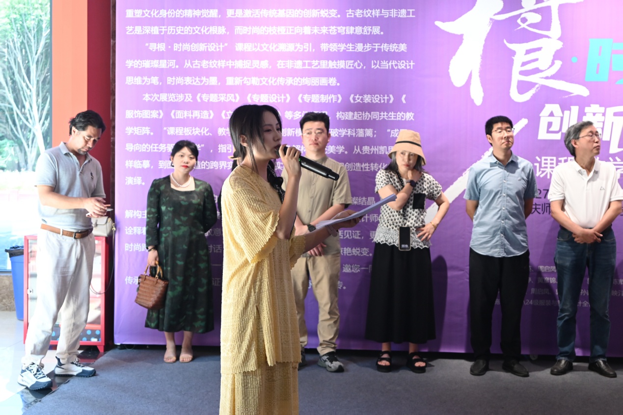 开幕式在于波馆长的主持下拉开帷幕。美术学院党委书记刘清泉、院长罗晓欢教授、副院长石永婷,学院相关职能部门、系部主任、专业负责人及服装专业全体师生齐聚现场。
