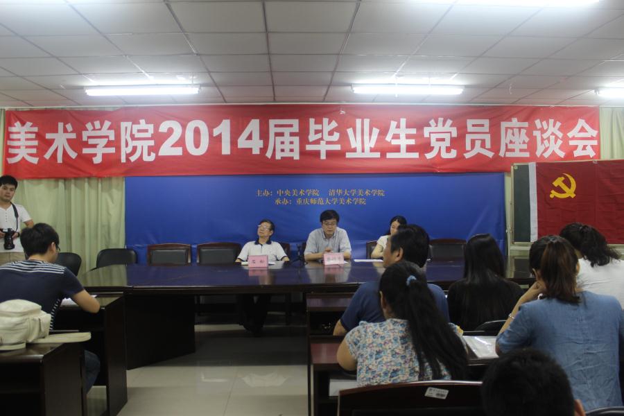 为进一步深化党的群众路线教育实践活动,加强服务型基层组织建设,贯彻落实2014年重庆市高校党建工作会议精神,进一步增强毕业生党员的宗旨意识、服务意识和责任意识,激励毕业生党员发挥先锋模范作用,6月5日上午10点,美术学院“中国梦、重师梦、我的梦”毕业生党员座谈会在美术大楼会议室举行。学院党委书记鲁福崇、副书记胡帆、石松特派组织员、本科生党支部书记刘艳坤、全体辅导员老师、研究生及本科生全体毕业生党员参加会议。会议由刘艳坤老师主持。