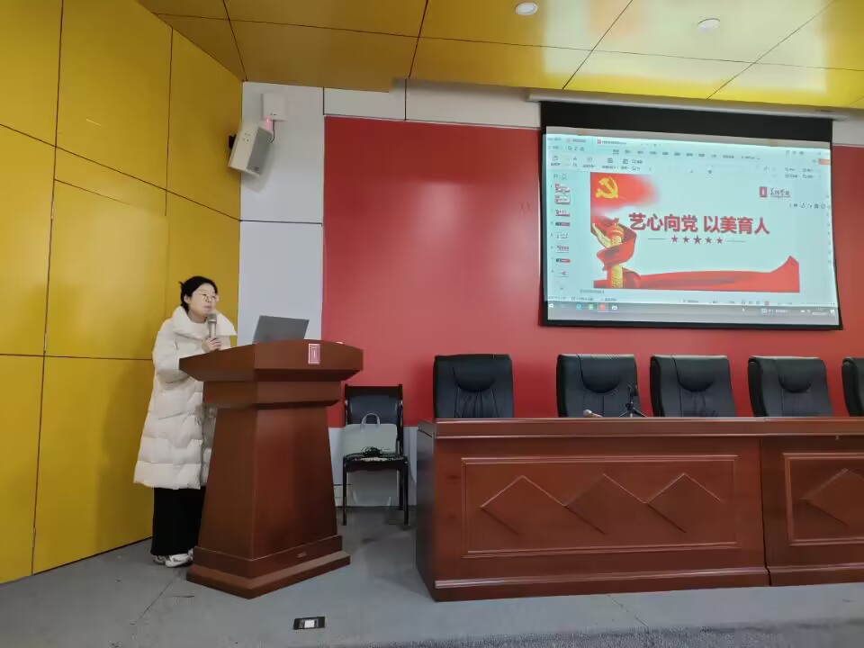 2023年12月21日中午,美术学院全体党员在南门花马讲堂开展“共享式”党课学习,听取学生一支部书记张晓艳老师关于学生一支部校级“样板支部”建设情况汇报。活动由院党委刘清泉书记主持。