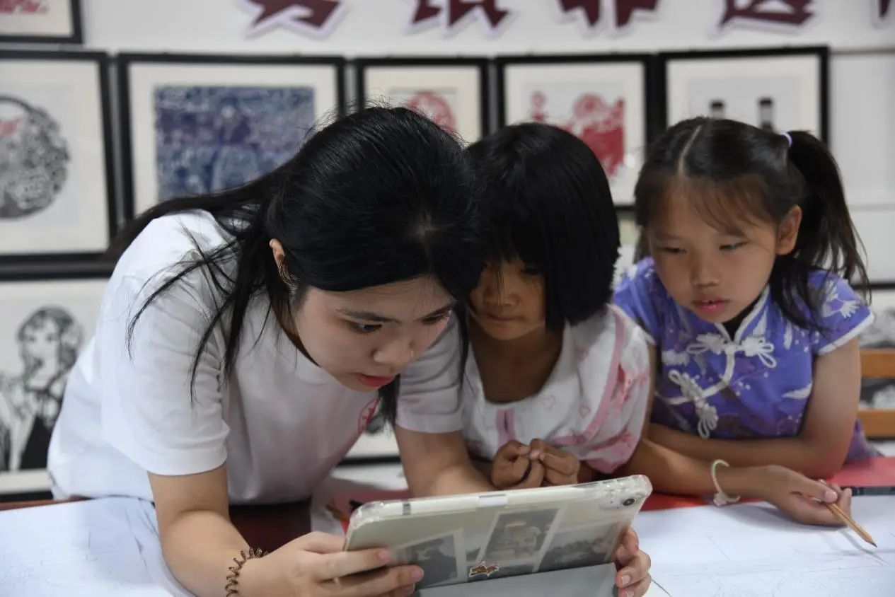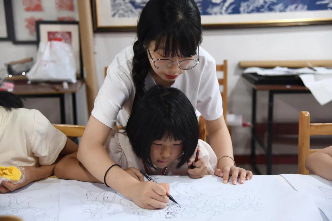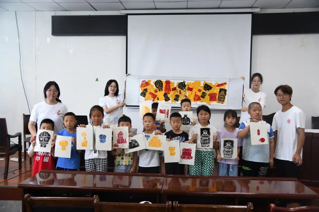 美院学子充分发挥专业特长和优势,把长征故事设计成《长征路上的老物件》《我心中的长征路》两堂主题课程。用非遗版画工艺,将红军长征途中的重要战役,如青杠坡战役、娄山关战斗,以及主要物资,如煤油灯、马背上的医药箱、草鞋等再现。孩子们通过亲自动手制作版画,深切地感受到了优秀传统文化以及伟大革命文化的迷人魅力。