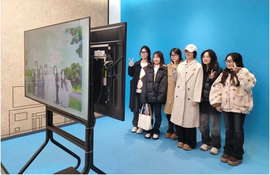 在校史馆数字化互动留言拍照区域,党员们纷纷在数字实景拍摄区拍照打卡、合影留念。这一区域既能够让在校同学们“足不出户”便可打卡各校区的美景,又能够方便广大返校的校友领略母校的四季风光,增进校友与母校的感情。