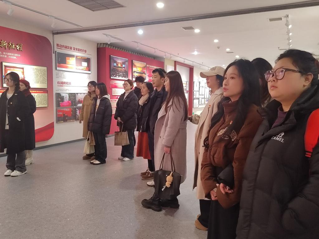 ▲党员们参观校史馆