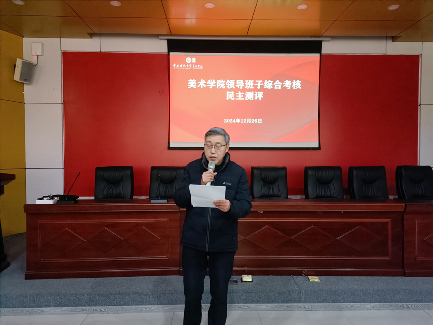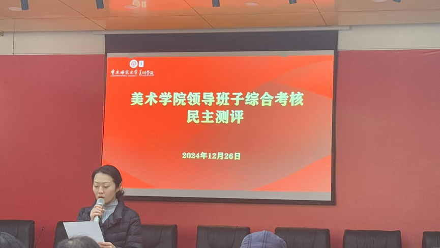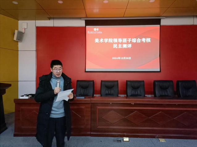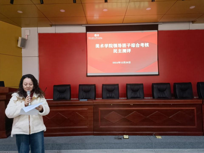 2024年12月26日下午,美术学院在花马大讲堂举行本年度第十一次“互喻式”教职工政治理论学习会。学习会分为两个部分,一是美术学系主任赵忠华博士介绍教学团队建设,黄莎老师分享“蒲公英”行动经验;二是领导班子述职及民主测评。全体教职工参加,学院党委刘清泉书记主持。