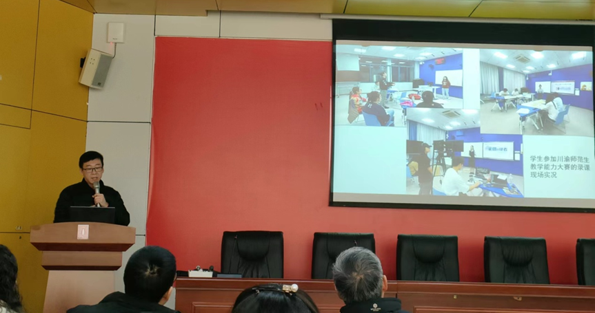 首先,美术学系主任赵忠华博士分享了美术学(师范)专业教师团队建设的情况并提出思考和规划。他说道,美术学系有四个教师团队:一是数字绘画教学团队。该团队基于《数字绘画》课程,前期重点引导学生从传统板绘转向定格动画后期重点培养学生在大广赛的定格动画赛道中的参与能力二是赛课团队。该团队基于《学科课程与教学》课程,选拔优秀学生进行教学技能比赛的指导,教师团队成员全程参与学生的课程设计、备课、磨课和视频录制等环节。近年来,学生在讲课比赛中屡获佳绩,成绩斐然三是实践教学团队。该团队以重庆师范大学龙兴附二小和虎中社区为基地开展教学实践。四是大中小幼一体化人才培养团队。该团队正在打造校级教学成果奖。