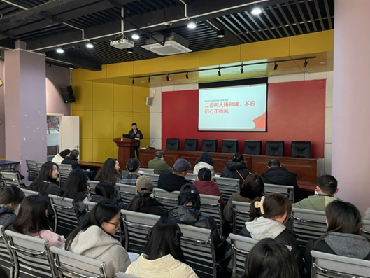 张云霄老师首先从出现的师生沟通不畅现象切入,强调了师德师风的重要性。他阐释了师德师风的概念,即师德师风是教师职业道德和行为规范的总称,是教师职业的核心要求和基本准则。详细解读了国家出台的有关加强师德师风建设的文件,并列举了教师行为失范的惩罚措施,强调对师德违规行为零容忍态度。