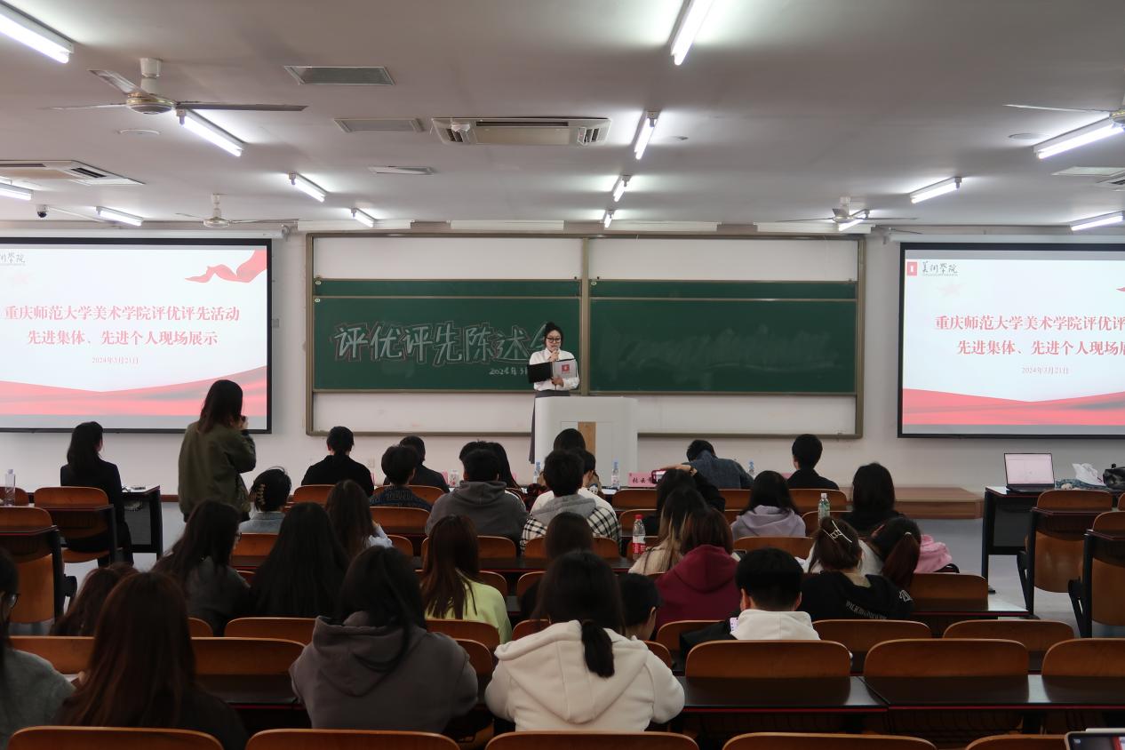 为深入学习习近平新时代中国特色社会主义思想和党的二十大精神,践行社会主义核心价值观,培树先进典型,凝聚榜样力量,激励同学们刻苦学习、奋发进取。按照学校评优评先工作通知要求和我院实际,美术学院班子高度重视学院评优评先推选工作,于3月21日在励志楼2213开展2023年度评优评先系列先进集体、先进个人现场展示遴选活动。美术学院学工办主任兼分团委书记余艳婷、辅导员李黎、张晓艳、闫杰、万祖毅、张云霄、陈俊霖老师参加,2022级、2023级全体班委及部分学生代表现场观摩学习。