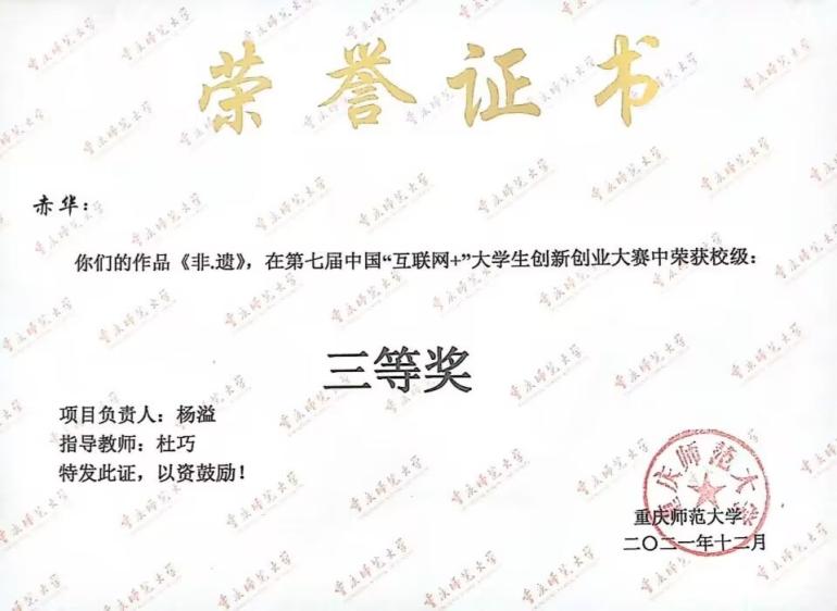 在第七届中国“互联网+”大学生创新创业大赛中荣获校级三等奖