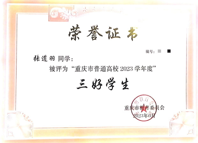 2022-2023学年度获重庆市“三好学生”;
