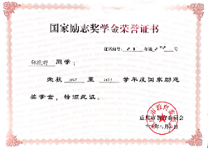 2020-2021学年度获“国家励志奖学金”;