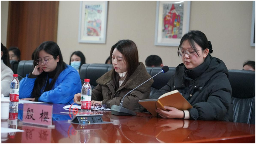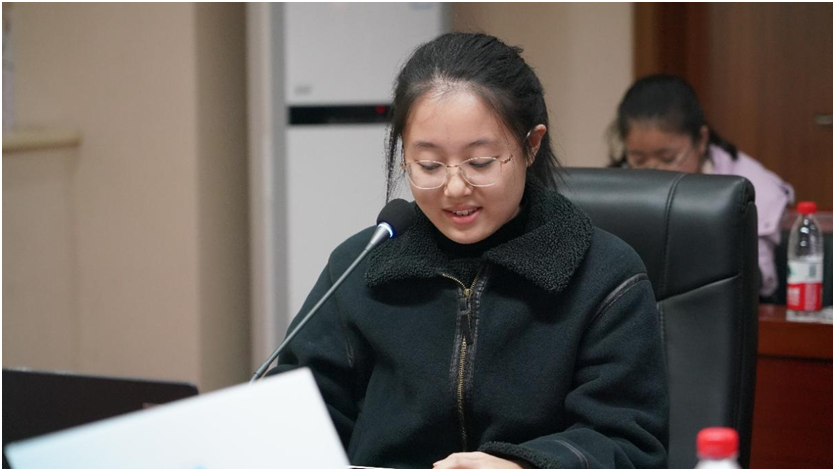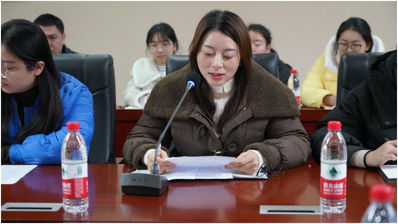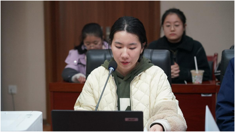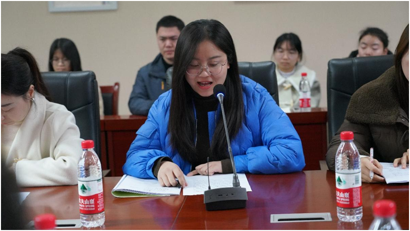 ▲实习学生代表进行了汇报发言