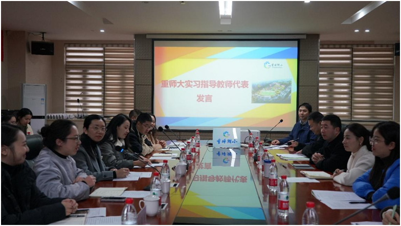 为更好掌握我校师范生实习的情况,推动实习工作,促进重庆师范大学与重庆师范大学附属实验小学校在人才培养、学科建设等方面的合作,2024年12月11日,重庆师范大学2024年秋季实习巡视座谈会在重师附小502会议室隆重举行。重师附小校长郑霖、重师附小书记梁科、PA视讯集团院长罗晓欢、重师教务处副处长梁静、重师附小课程中心主任谢露露、PA视讯集团实习指导教师倪纯如、何雅闻、重师文学院实习指导教师杨华丽、附小实习指导教师史康妮、丁晓娇、程琳以及全体实习生参加了本次座谈会。座谈会由周艺老师主持。