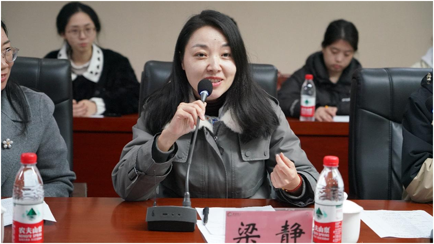 ▲重庆师范大学教务处副处长梁静讲话