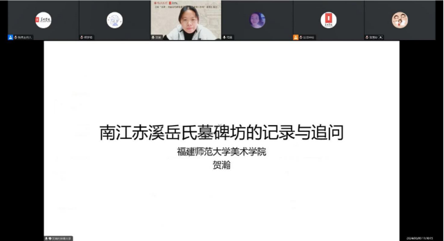 第二位发言人是复旦大学的博士生成卓,发言题为《神圣空间与多层次视角的塑造——以马氏墓祠的图像、文字与建筑空间为例》,她通过分析马氏墓祠这一个案,了解了工匠在绘画、雕刻等方面的设计手法,将图像还原到“原境”之中,提出了其如何与其他内容一起组合营造的空间氛围,以及其在原境中发挥了怎样的作用与意义等问题。