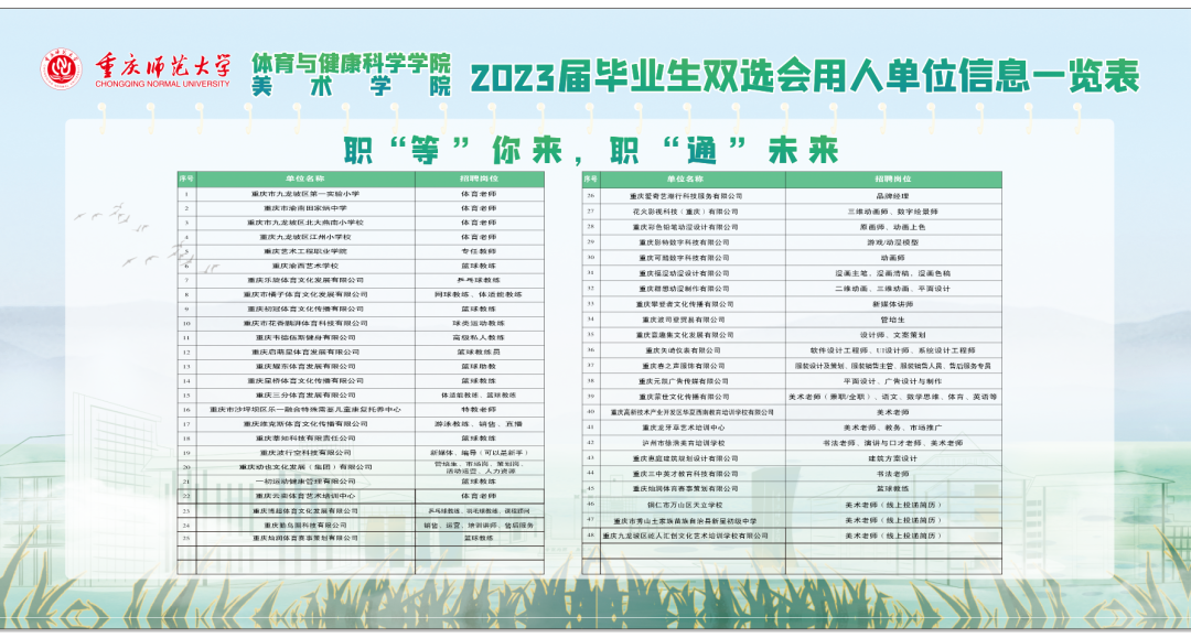 上一条:美术学院“以专业促就业,以就业促发展”党建引领系列主题活动启动 下一条:PA视讯集团“与你相约,‘职’通未来”2023年春季双选会用人单位邀请函