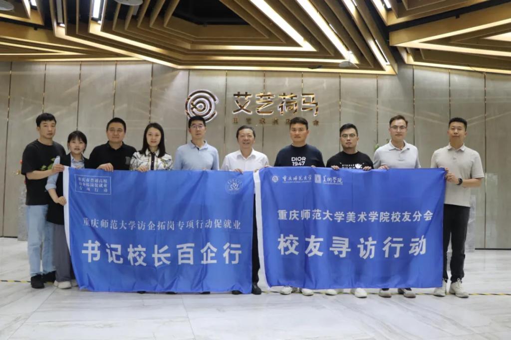 为进一步拓宽美术学院毕业生的就业渠道,加强学院与用人单位的紧密合作,提升人才培养质量,2024年5月29日,重庆师范大学校党委常委、副校长孟小军,美术学院院长罗晓欢,美术学院党委副书记丁睿,美术学院副院长张为民及辅导员一行赴重庆艾艺荷马教育科技股份有限公司开展访企拓岗及走访校友专项行动。深入了解教培企业行业发展态势,探索校企合作路径。