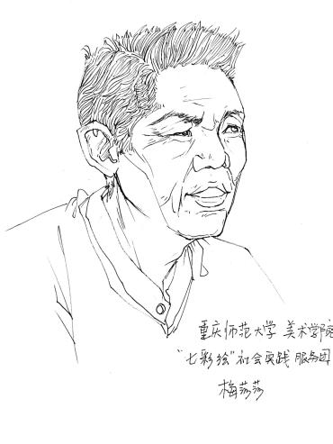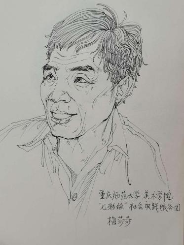 为老党员绘出速写画像