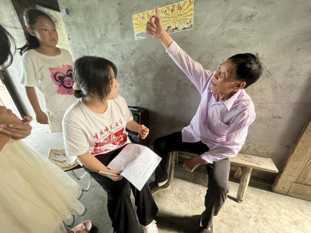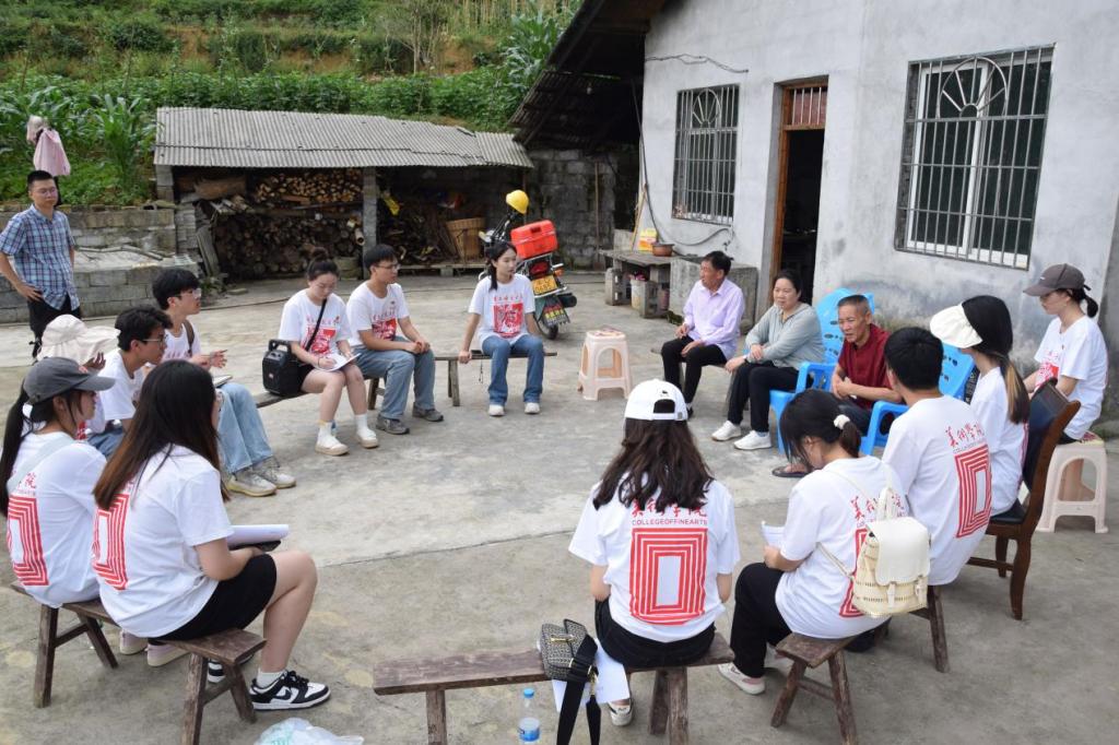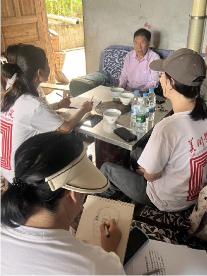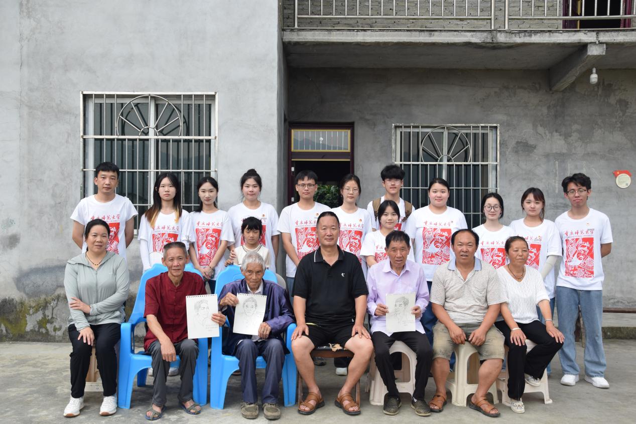 在石泉村一所老房子前的院坝里,一名参加过朝鲜战争95岁高龄的老党员和30年党龄的村支书同志,给同学们讲起了峥嵘岁月和乡村振兴的故事,一场让人难忘的思政课就此展开。同学们拿起手中的画笔,记录下口述党史。