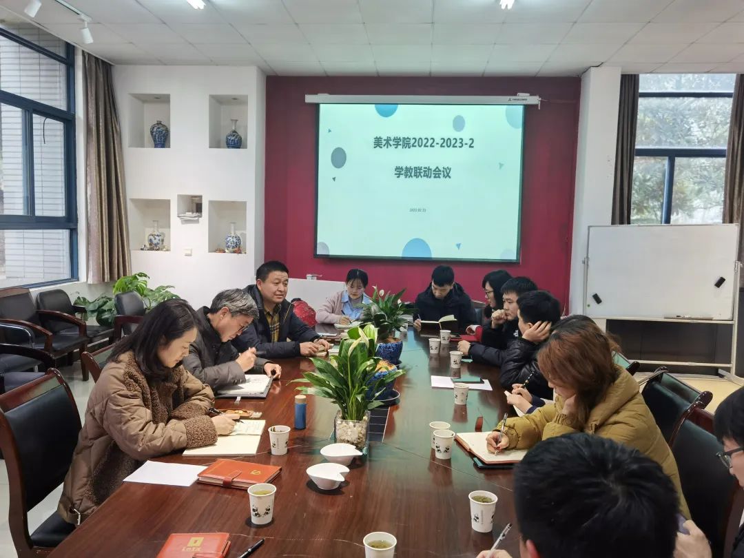 2023年2月23日,美术学院召开2022-2023学年春季学工与教学联动会议。学院党政领导班子、各系部主任、教科办主任和学工办辅导员代表参加了会议。