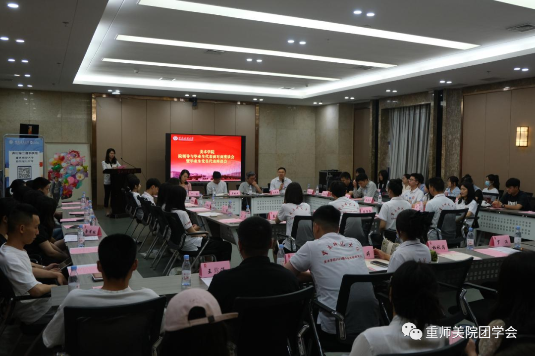 2023年6月1日下午4点,美术学院在博雅楼502会议室举行2023届毕业年级校友分会成立仪式,美术学院党委书记刘清泉、副院长罗晓欢、党委副书记丁睿,党政办、教科办、各系部主任代表、各年级辅导员、本科与研究生毕业生代表,以及低年级学生代表参加此次活动。