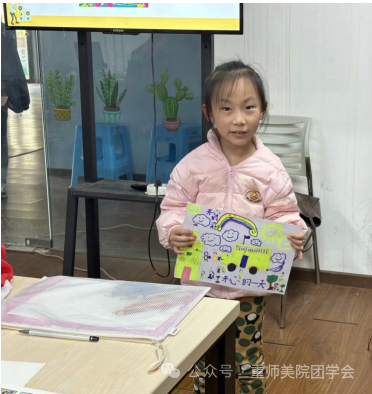 课程接近尾声时,志愿者们组织小朋友们依次上讲台展示自己的作品,让小朋友们相互借鉴、学习欣赏。