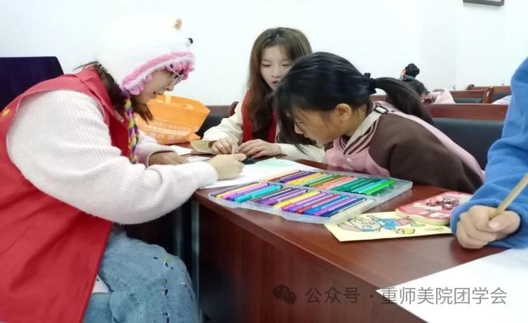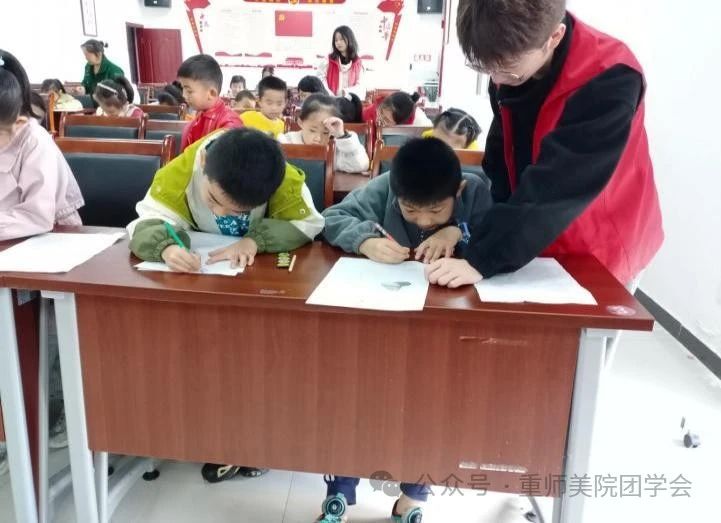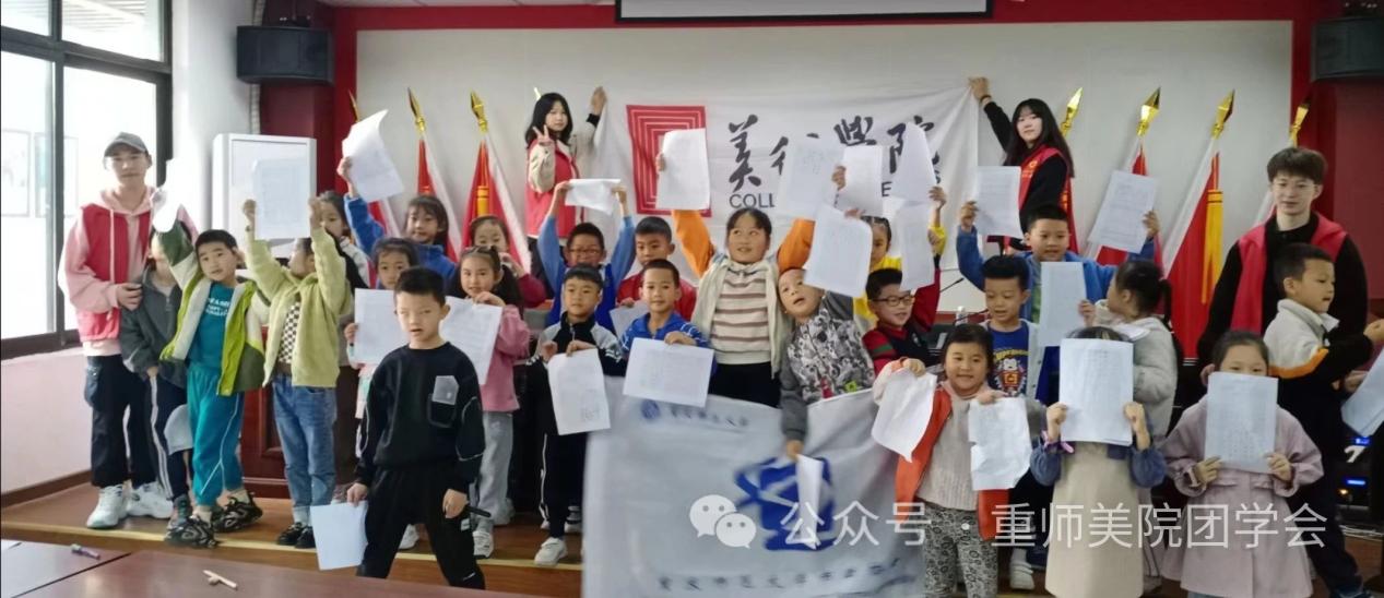 美术学院团委学生会积极组织开展常规性的学善社区美育志愿服务,开展以不同教学主题的美术专题与书法专题课。书法与美术相互交叉教学,相互促进,相互交融,让小朋友们在艺术的世界中得到艺术的启蒙,理解中华文化的内涵与魅力。