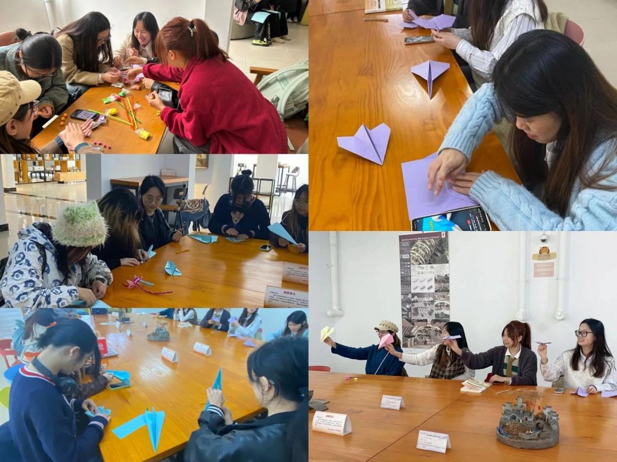 在折纸工作坊中,同学们不仅观摩了手工达人精湛的折纸技巧,更亲身参与了形态各异的折纸作品的制作。从栩栩如生的动物到生机勃勃的植物,再到别具一格的建筑,折纸艺术让具象事物得以生动再现,让同学们在创作过程中感受到了艺术的魅力。