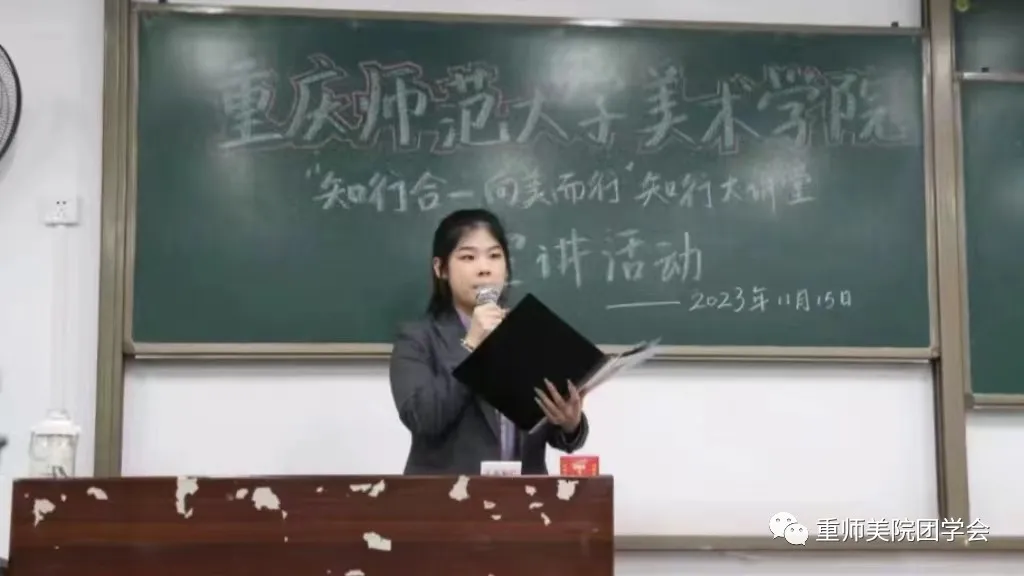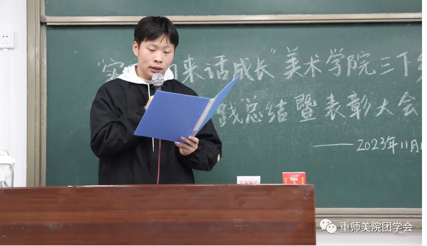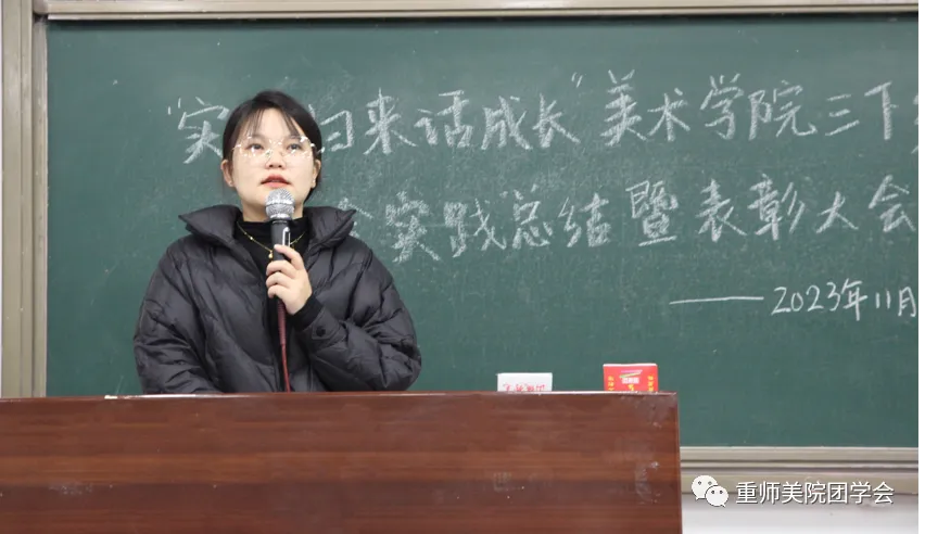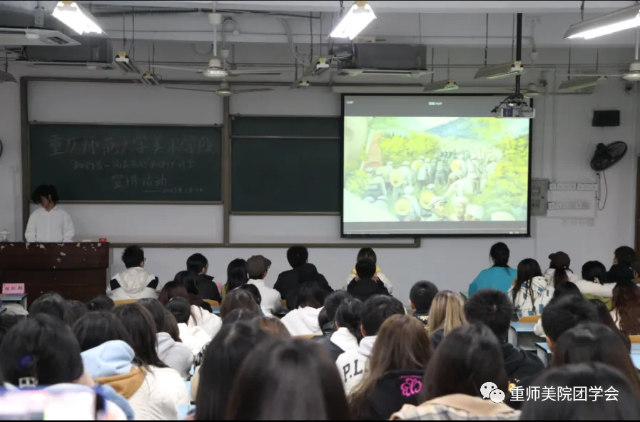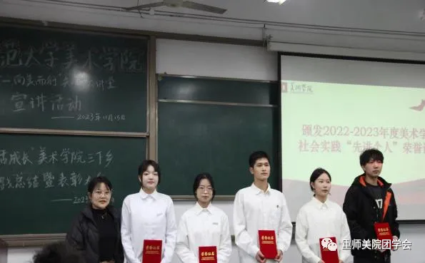 为深入学习宣传贯彻习近平新时代中国特色社会主义思想,全面贯彻落实党的二十大精神,号召美院学子投身社会实践,在奋斗拼搏中坚定理想信念。美术学院于11月15日中午在弘德楼顺利举行“知行合一,向美而行”知行大讲堂宣讲暨“三下乡”社会实践活动总结。出席本次活动的有辅导员张晓艳,指导老师李黎,2023年“三下乡”社会实践活动代表,青马班成员代表,2022级和2023级学生代表。