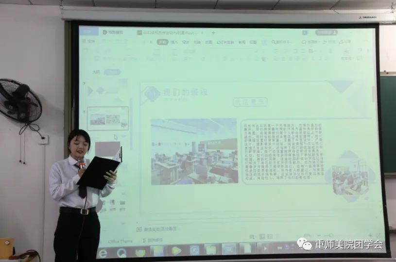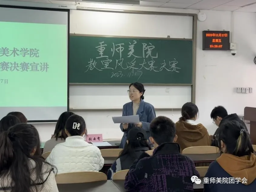 比赛中,各班级宣讲人进行了精彩的宣讲,分别从班级特色、班级文化、团建活动、集体荣誉、班级整体成绩等方面全方位立体化向大家展示了自己的班级,秉持了“美院美生,美美与共”的理念。