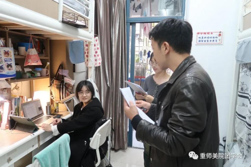美术学院团委学生会生活部对各参赛寝室提交的初赛材料进行了筛选后,生活部的工作人员和辅导员老师们分别走进了和风苑、雅风苑、惠风苑。主要围绕寝室干净整洁、宿舍装饰、特色打造、寝室公约、有无违规用品等各方面进行了现场走访,以公平公正公开为原则开展了“十佳寝室”评比工作。