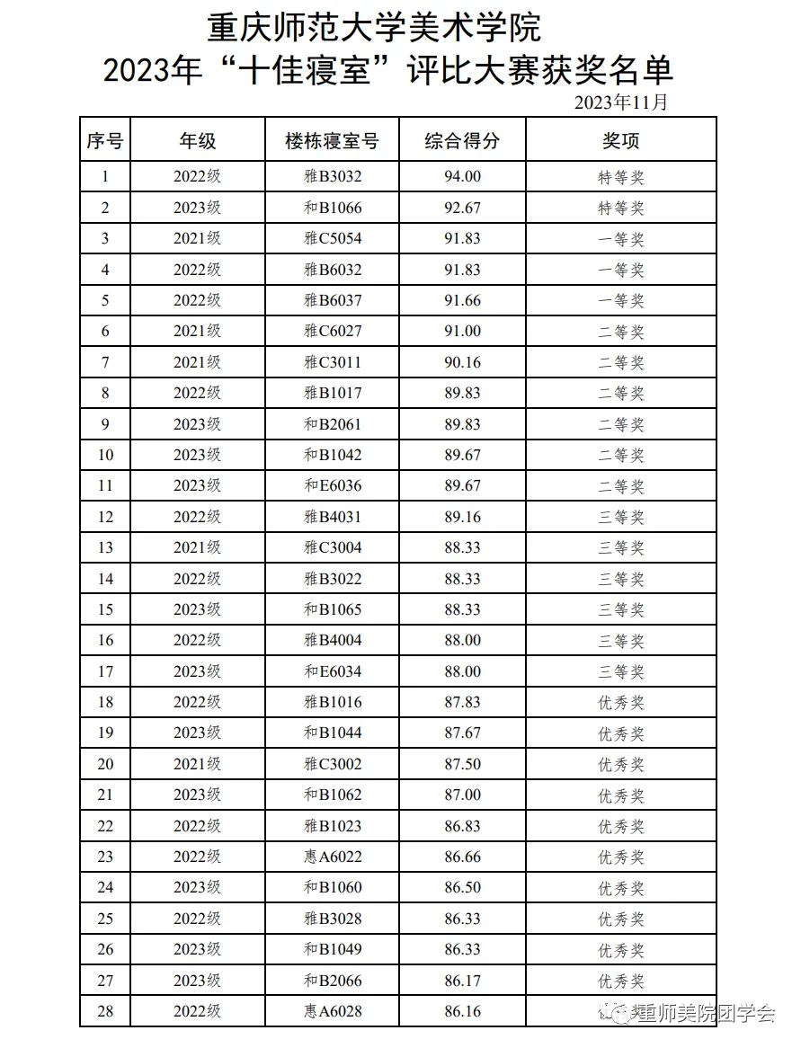 寝室不仅是我们在校园中的第二个家,更是我们共同度过大学生活的地方。为了营造一个温馨、融洽的寝室环境,展现寝室文化的多样性和魅力,美术学院特此开展了“十佳”寝室评比大赛。