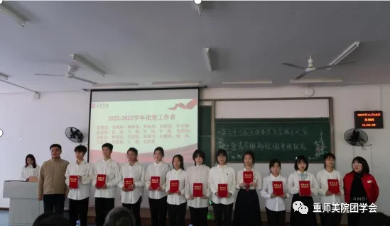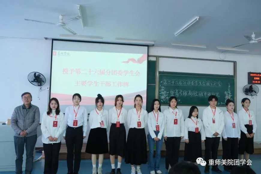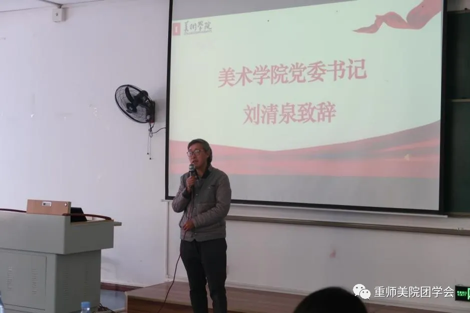 紧接着美术学院党委书记刘清泉授予主要学生干部工作牌,并希望学生干部们要明确自身职责,认真履职,按章办事,争做先锋模范,起到引领示范作用。