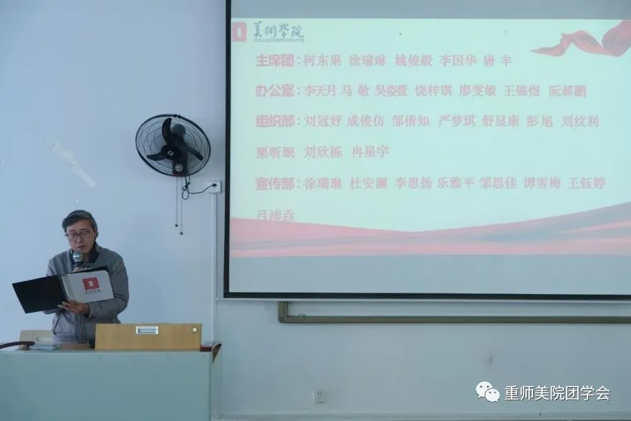 大会第一项,首先由美术学院党委书记刘清泉宣读《美术学院第二十六届分团委学生会成员名单》。