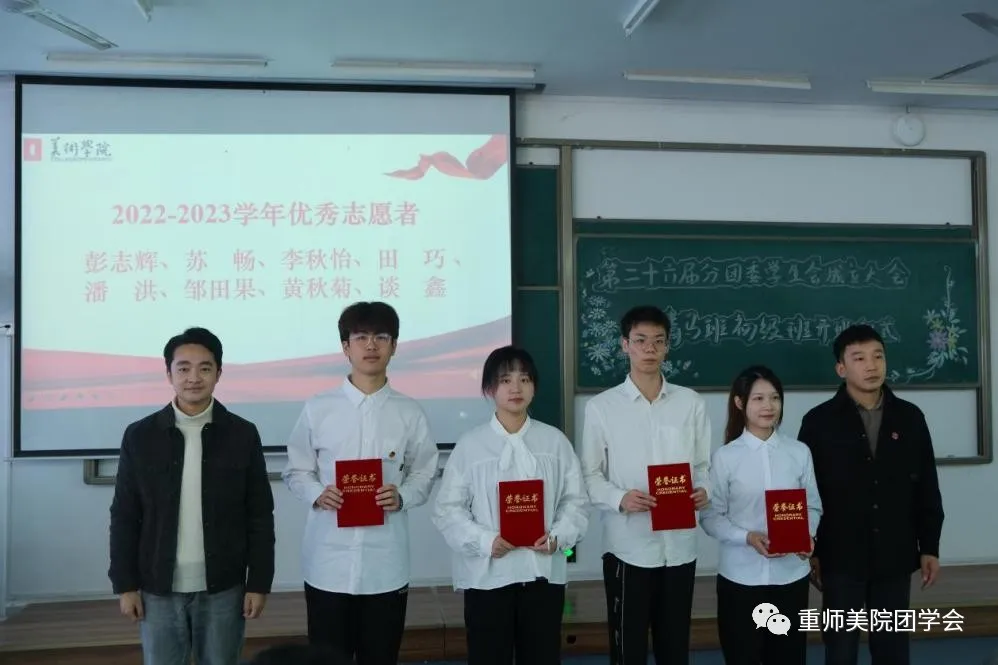 宣誓结束后,领导与老师们为青马班优秀学员以及2022-2023学年“优秀工作者”、“优秀志愿者”颁发荣誉证书。受表彰的这批优秀学员为新进初级班成员、学生干部作出了表率,使得他们有了前行目标和方向。