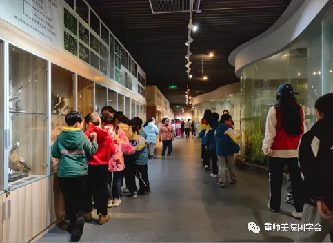 结束科技节参观后,志愿者们组织小朋友们前往了博雅楼参观。同学们对展馆里的动植物标本、瓷器等的发展历程和各色的老物件等都表现出了极大的兴趣。