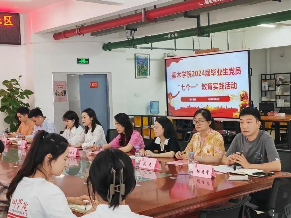 为引导毕业生党员坚定不移听党话、跟党走,争做新时代的社会主义建设者和接班人。美术学院开展2024届毕业生党员“七个一”教育实践系列活动。美术学院党委副书记丁睿老师、美术学院学工办主任余艳婷老师、全体辅导员老师、全体毕业生党员 、预备党员、入党积极分子代表和入团积极分子代表参加。本次活动由张晓艳老师主持。