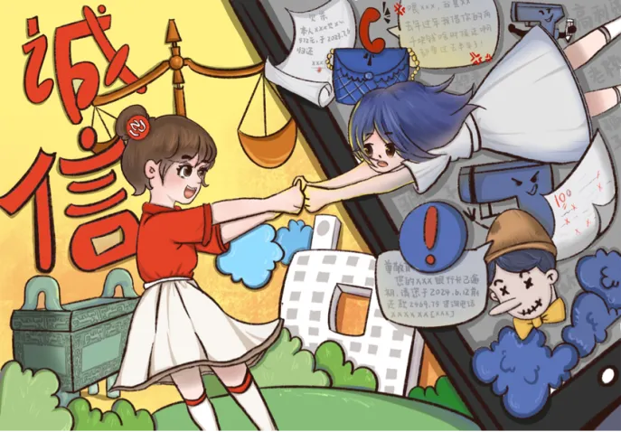 2024年5月20日—6月3日美术学院以书法、绘画、创意设计等文化艺术创作为载体,以多元育人方式深化诚信教育意义,开展诚信书画作品创作活动。创作内容涵盖资助诚信、考试诚信、学术诚信、创业诚信、求职诚信等方面。作品经过闫杰、张云霄等老师组成评审团进行严格评审,选出14幅作品参加校级的评比。以下是获得推送校级比赛资格的作品。