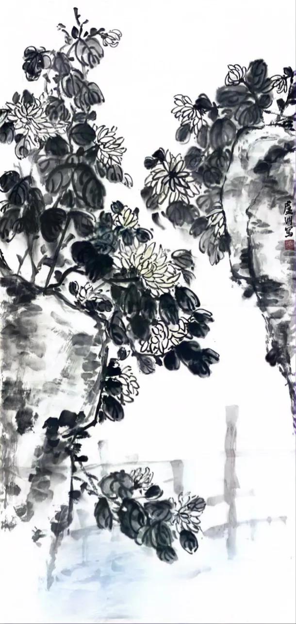 危石抱菊图