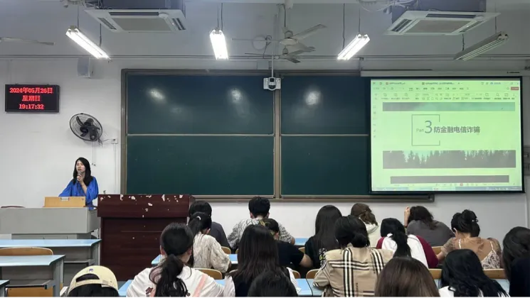 主要内容涉及预防金融和电信诈骗、预防违法高利贷、个人征信规则和理财常识等方面的专题知识。讲座对个人征信体系、生源地助学贷款业务及还款方式进行介绍,对个人还贷警示案例讲解,使贷款学生了解征信体系及还贷相关政策流程,树立诚信还贷意识,维护个人征信。