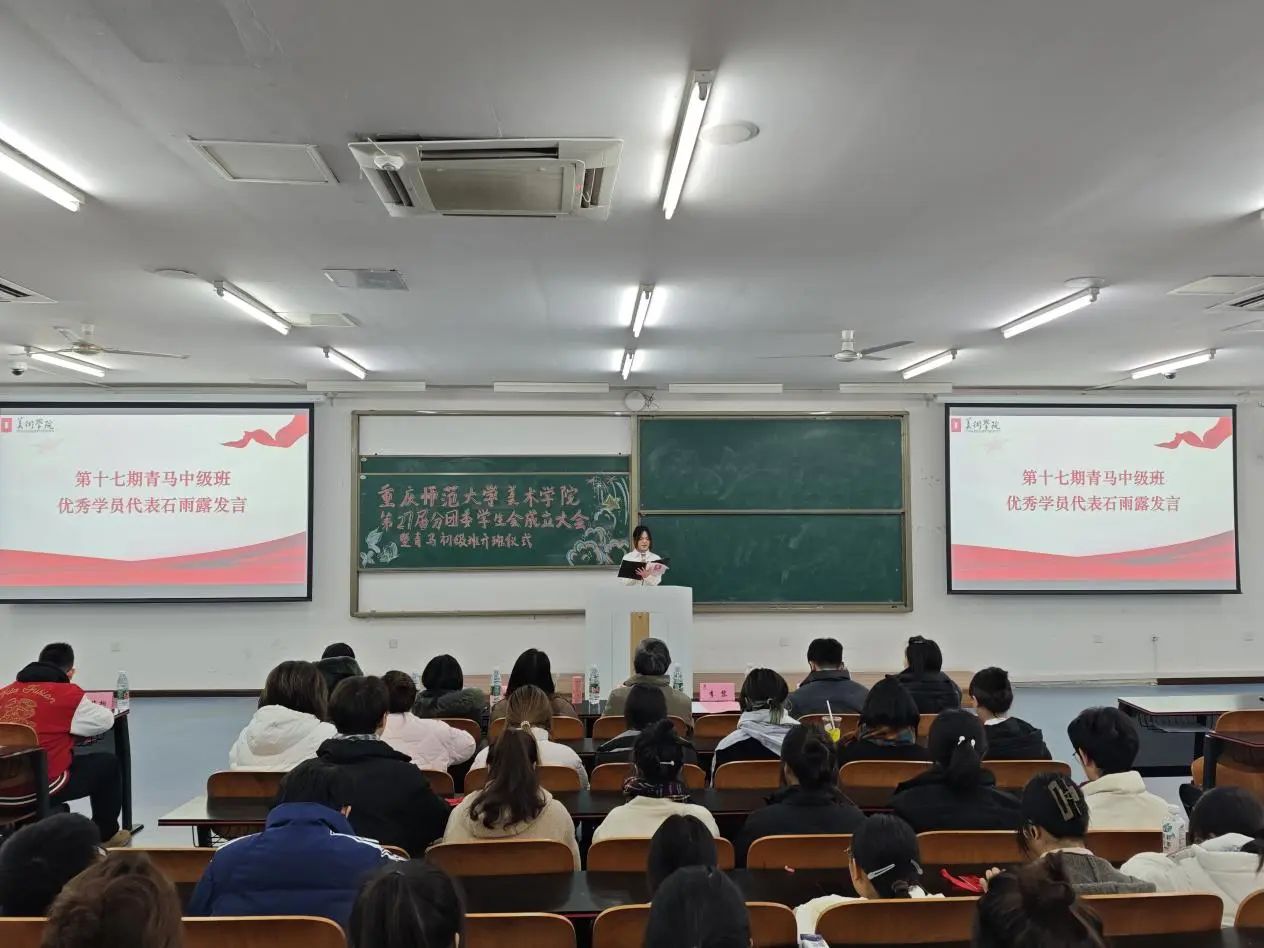 第十七期青马班初级班班主任黄秋菊在会上汇报了青马班的基本情况,并带领全体学生干部进行了庄严的宣誓仪式。这一环节增强了同学们对马克思主义理论的认同感和归属感,坚定了他们为共产主义奋斗终身的理想信念。