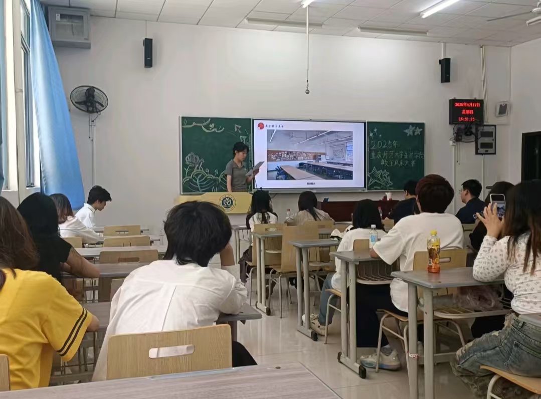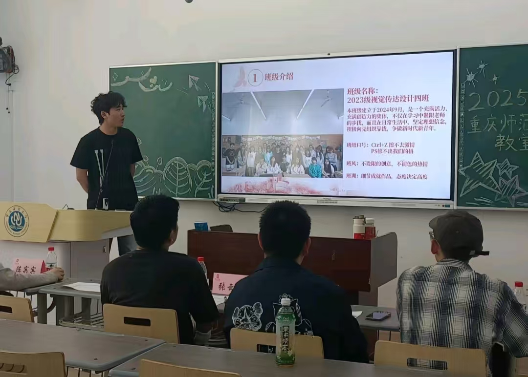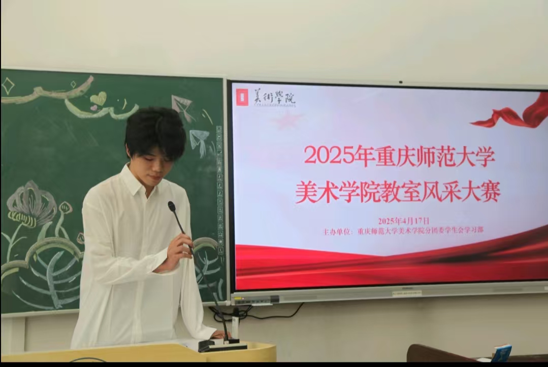4 月 17日晚,美术学院团学会工作人员深入初赛班级,从环境布置、秩序规整到专业特色彰显等多维度进行严格考察,为大赛的顺利推进奠定基础。4 月 18日下午,通过初赛进入决赛班级齐聚特教楼 T2104,展开激烈角逐。评委团队依据创意性、文化内涵、整洁度及专业契合度等标准进行打分。各班宣讲人通过精彩演讲和精美展示,全方位呈现班级独特魅力,充分诠释了“一班一风采,一室一精彩”的主题。